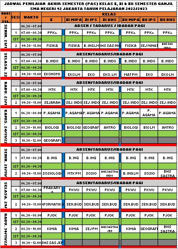 Pelaksanaan PAS Hari Rabu, 23 November 2022
